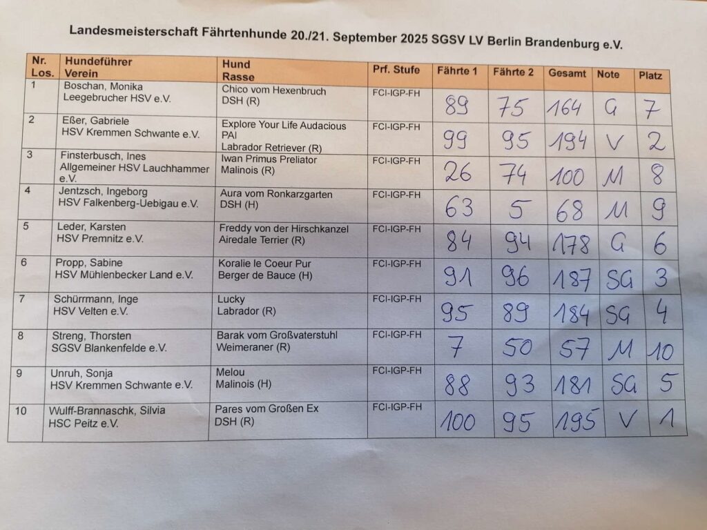 Fährtenhund Landesmeisterschaft SGSV LV BB am 20/21.09.2025 (Bericht von Sabine Propp)